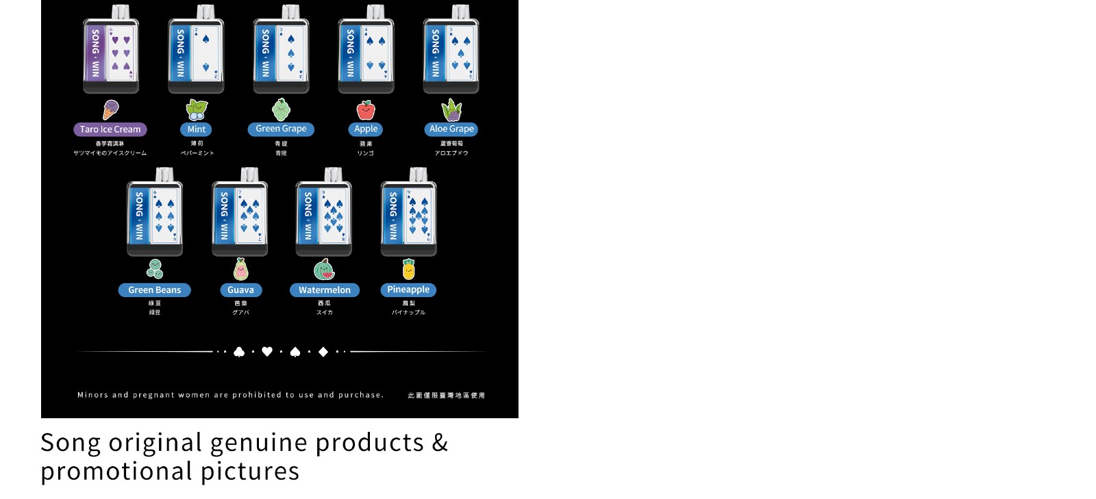 SONG hereby solemnly declares that it is a legitimate and compliant brand holding a tobacco monopoly production license. From raw material purchase to production and sales, we strictly control the use of food grade essence and flavor and industry-leading nicotine salt technology. We are committed to providing users with high-quality, high safety products.