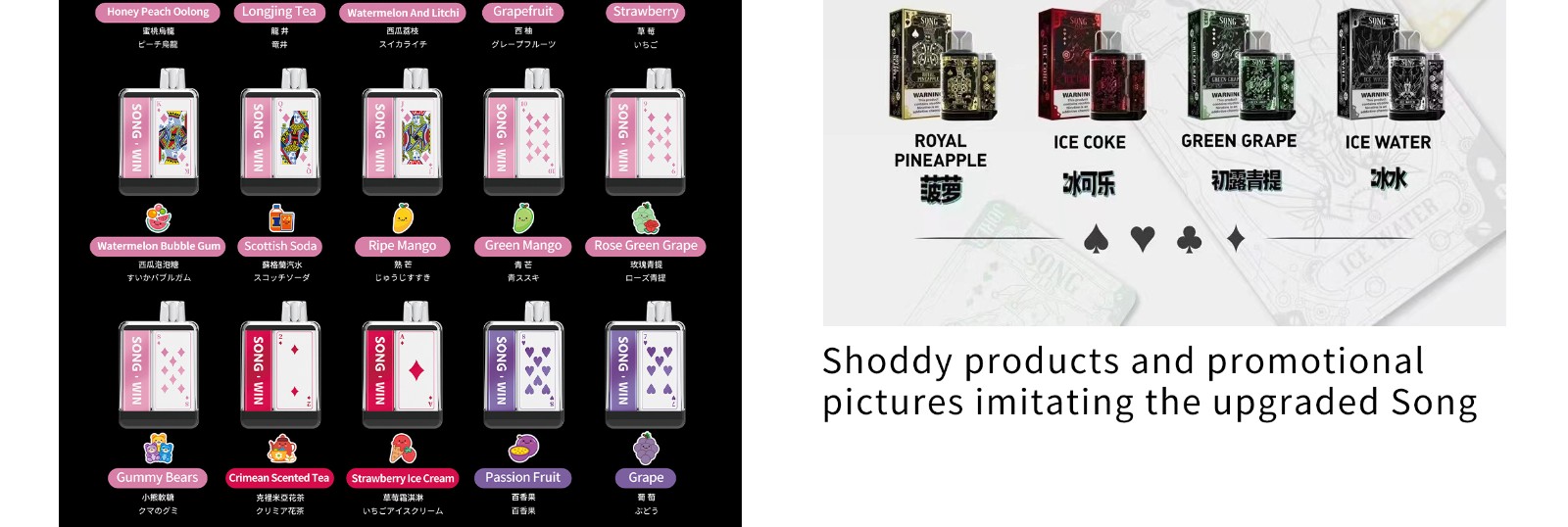 In addition, there are many fake and shoddy products on the market, direct plagiarism, no bottom line, bad behavior. SONG in this solemn statement: songvape.com/songvapestore.com exclusive official website for the SONG, in the design of website didn't appear are counterfeit products!