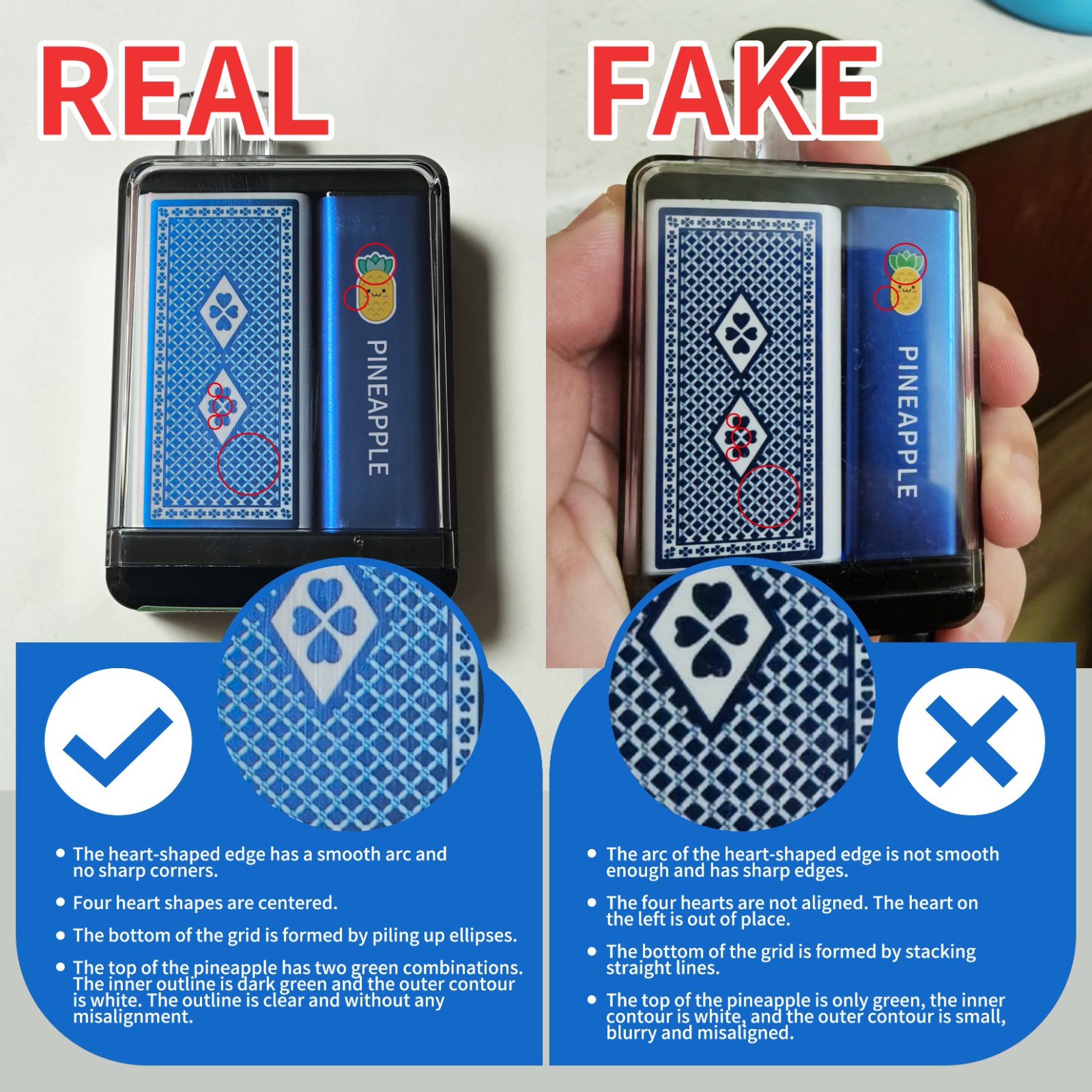 Recently, the company found that counterfeit products of the A01 (Y193) poker series have been leaked on the market. The following are the methods to distinguish the authenticity of the A01 (Y193) poker series. Players who purchase this series can identify the authenticity by themselves according to the illustrations.
