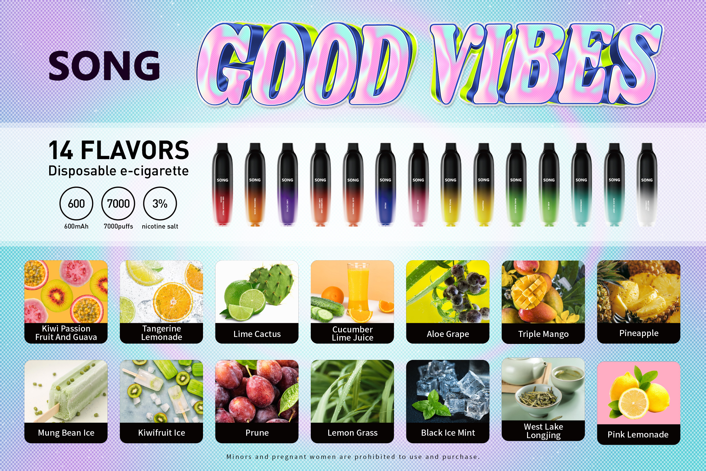 الثلاثي المانجو ( زجاجة صفراء ) / الوردي الليمون ( زجاجة مسحوق ) / مونج الفول الجليد / الكيوي الجليد ( زجاجة خضراء ) / عشب الليمون ( زجاجة المنثول ) / الكيوي الزعتر الجوافة ( زجاجة حمراء ) / البرتقال والبرتقال والجير سبعة ( زجاجة برتقالية ) / البرقوق الأح