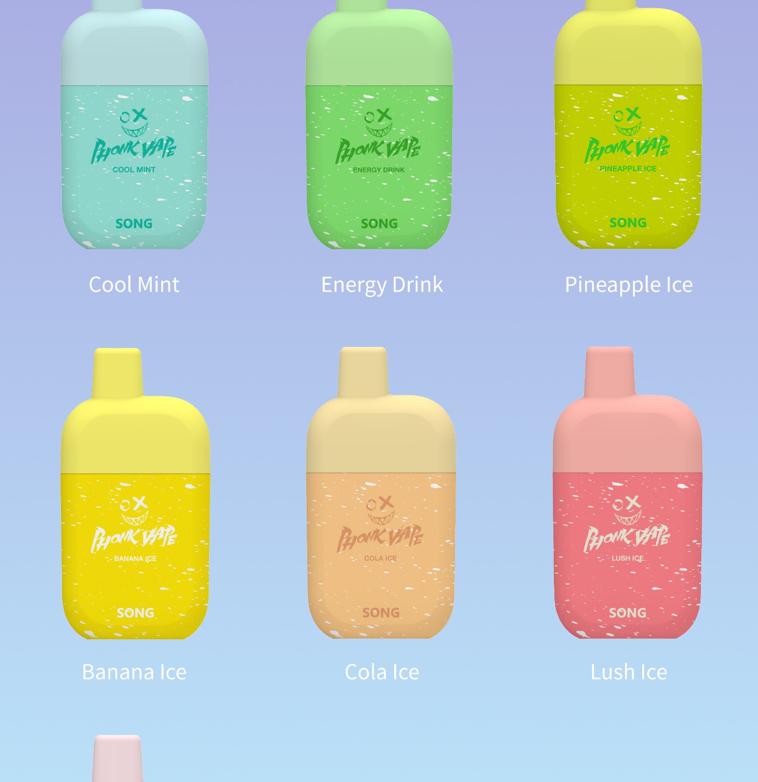 Aloe grape/Blueberry Razz/Blueberry Raspberry Lemon/Cool Mint/Energy Drink/Pineapple Ice/Banana Ice/Cola Ice/Lush Ice/Strawberry Kiwi