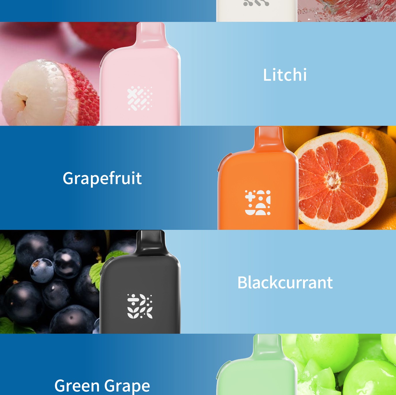 White Peach Oolong/Litchi/Grapefruit/Blackcurrant/Green Grape/Lemon Cola/Kiwi/Blueberry/Grape/Watermelon/Black Ice Mint/Longjing Tea
